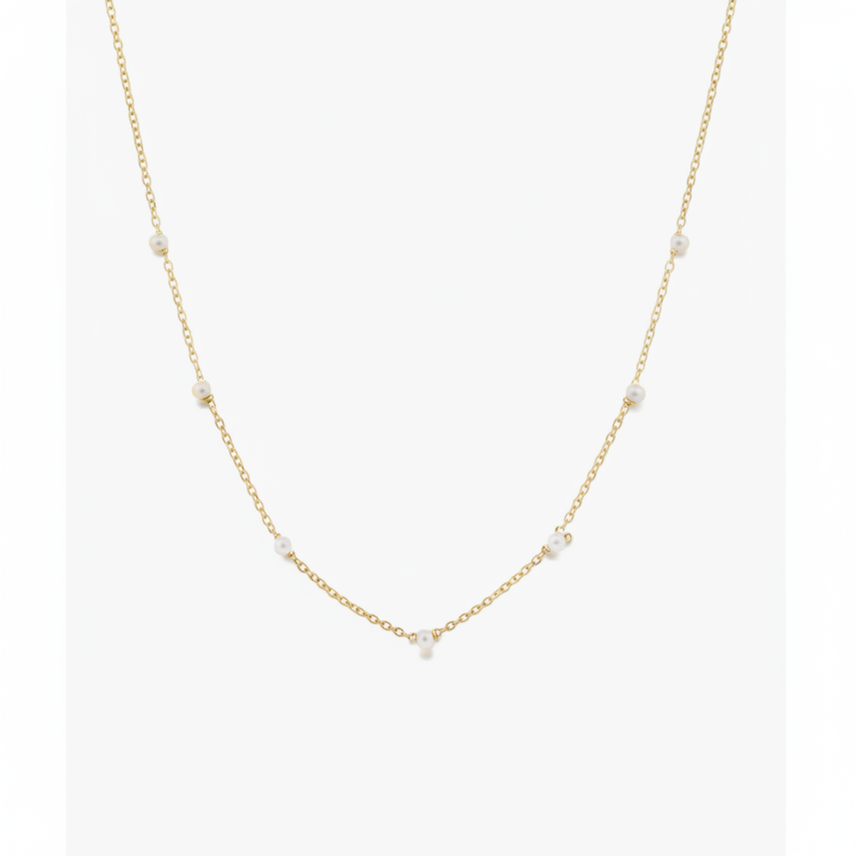 สร้อยคอ Eve Trendy พร้อมสายโซ่เคลือบทองและโรเดียม ประดับด้วยเพชรซิร์คอน มอยส์ซาไนต์ ควอตซ์ และไข่มุก ทำจากทองเหลือง