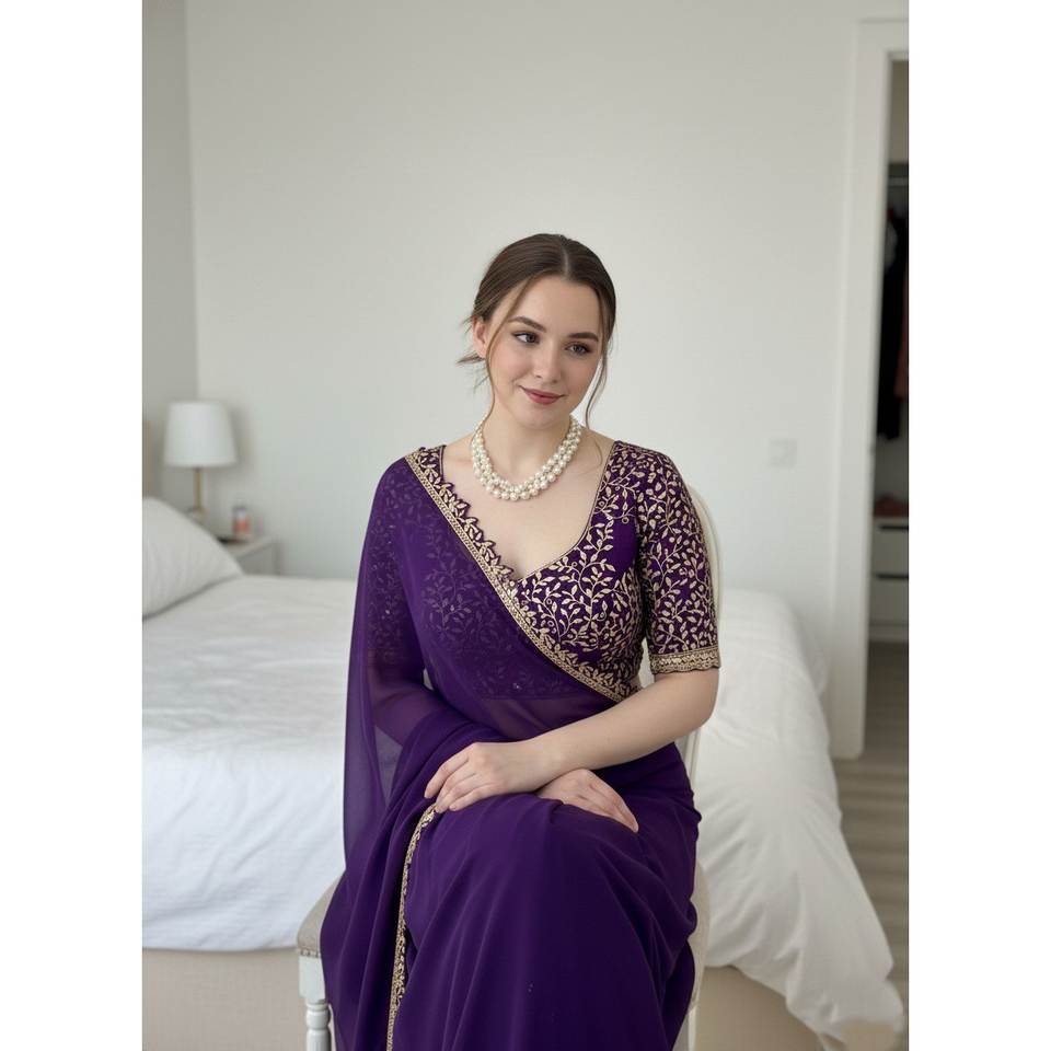 ชุดราตรี ผ้าส่าหรีสวยงาม พร้อมงานปักและขอบลูกไม้