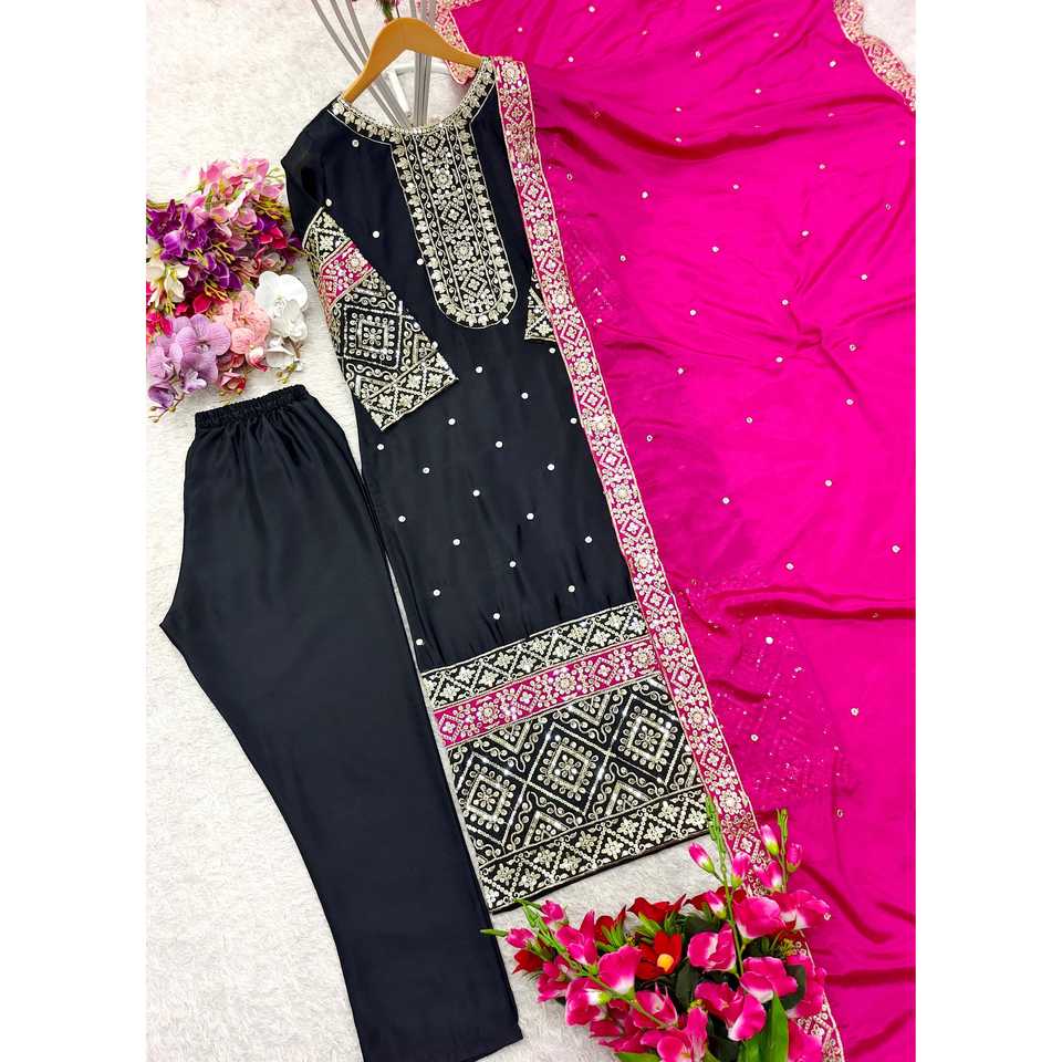 ชุดราตรีหรูหราปักบน-pent และ dupatta สำหรับงานปาร์ตี้ที่มีลำดับการทำงาน