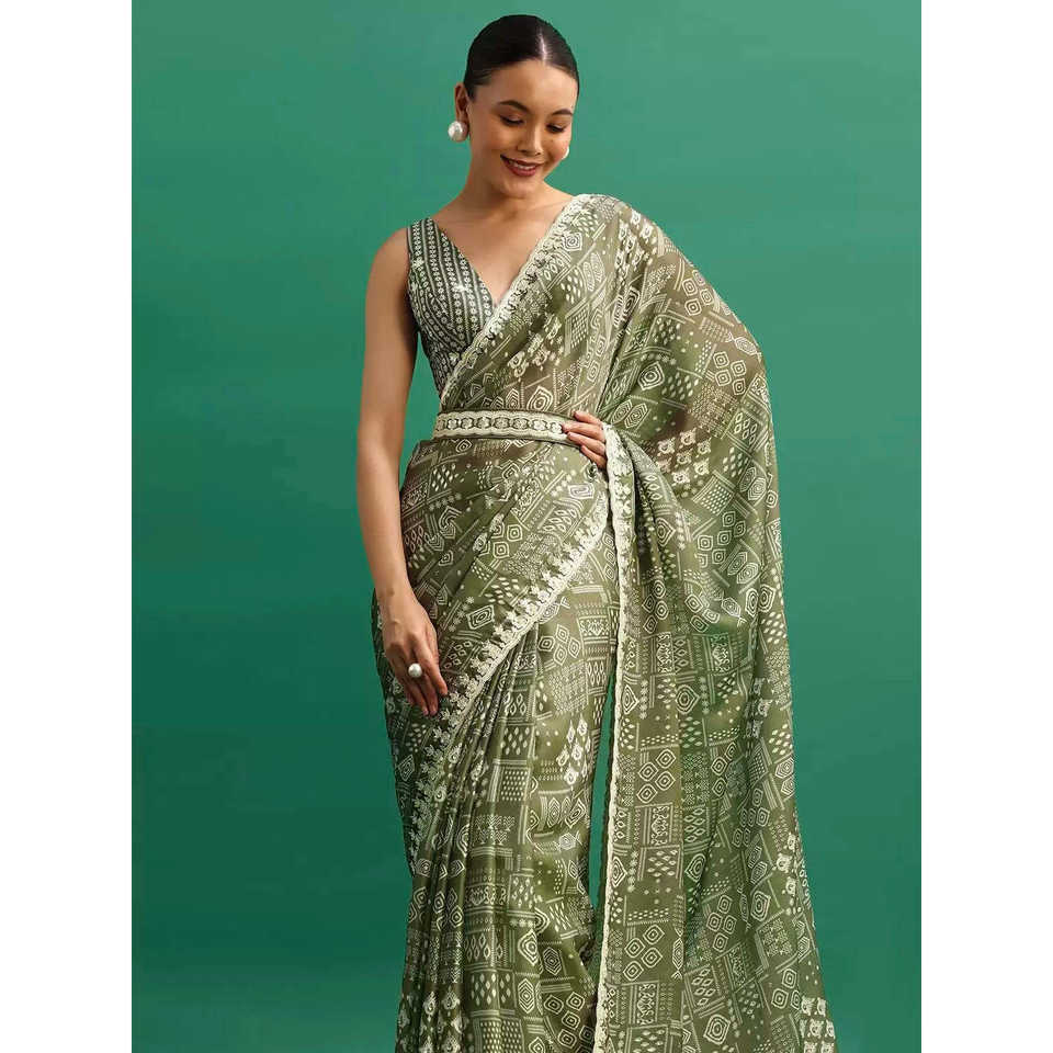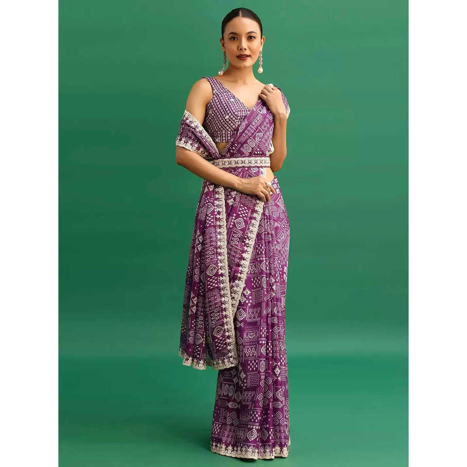 ชุดราตรีหรูหราสำหรับงานปาร์ตี้ ผ้าส่าหรี พร้อมงานปักและประดับเลื่อมอย่างประณีต