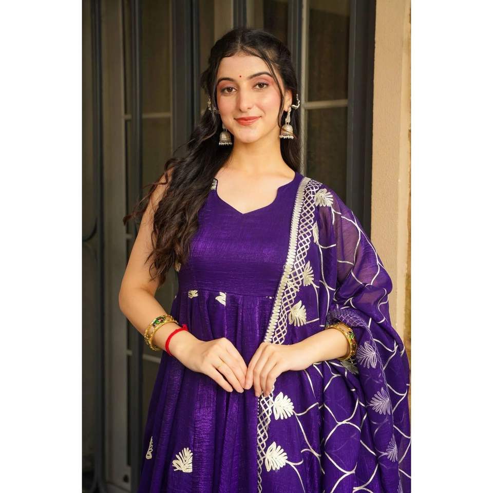 ชุดราตรีงานเลี้ยงสไตล์อนาร์กาลี พร้อมกางเกงและผ้าคลุมไหล่ ให้ลุคสง่างาม