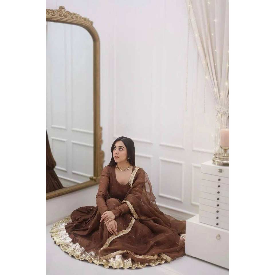 ชุดราตรีปาร์ตี้สวมใส่กับก้นและ dupatta ที่มีงานโมติ
