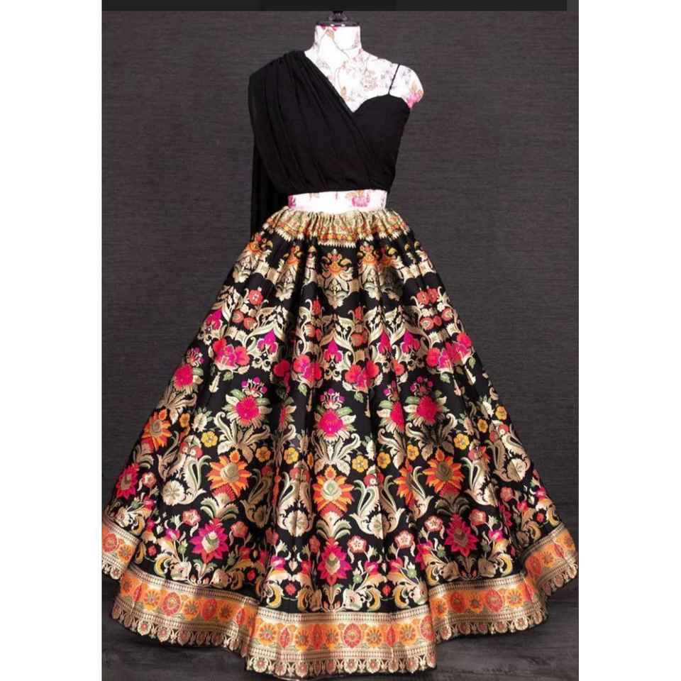 ชุดราตรีปาร์ตี้สวม lehenga choli กับ zari ทอผ้าทำงาน