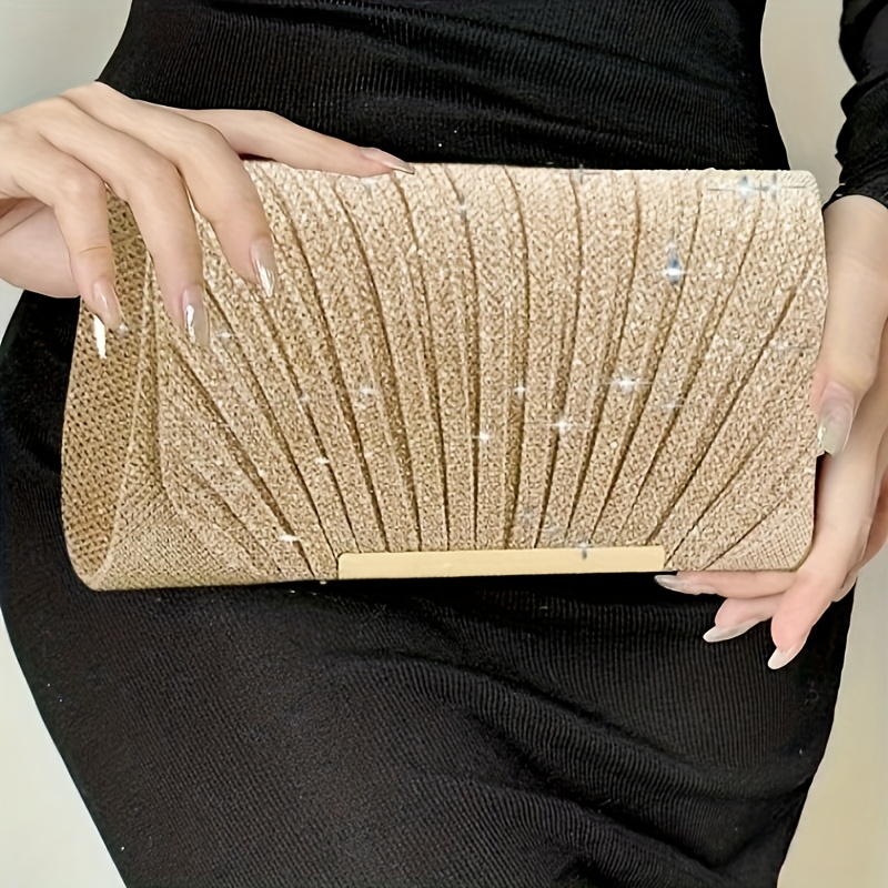 กระเป๋าถืองานเลี้ยงระยิบระยับสำหรับสุภาพสตรี วัสดุโพลีเอสเตอร์ทันสมัย กระเป๋าทรงสี่เหลี่ยมขนาดเล็กพร้อมโซ่หรูหราทันสมัย