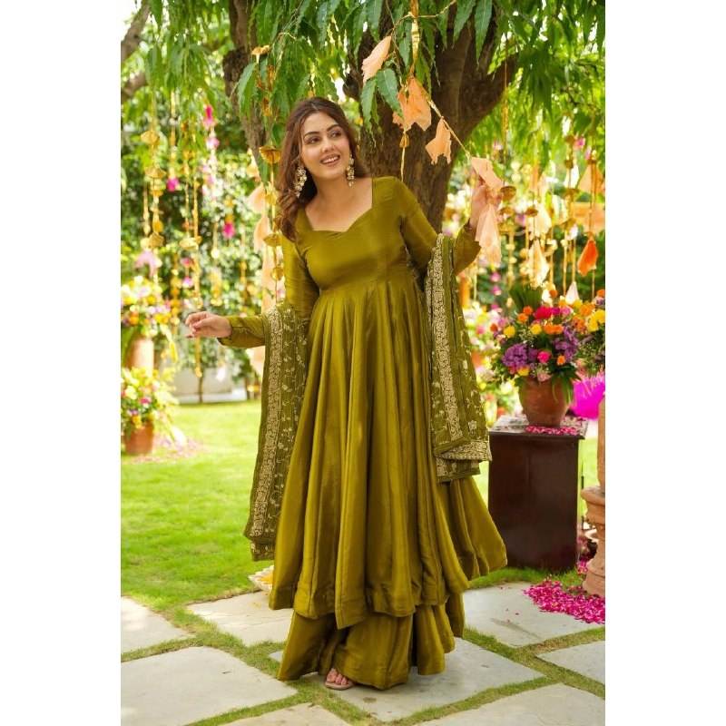 ชุดราตรี Anarkali สำหรับงานปาร์ตี้ปักด้วยลำดับ