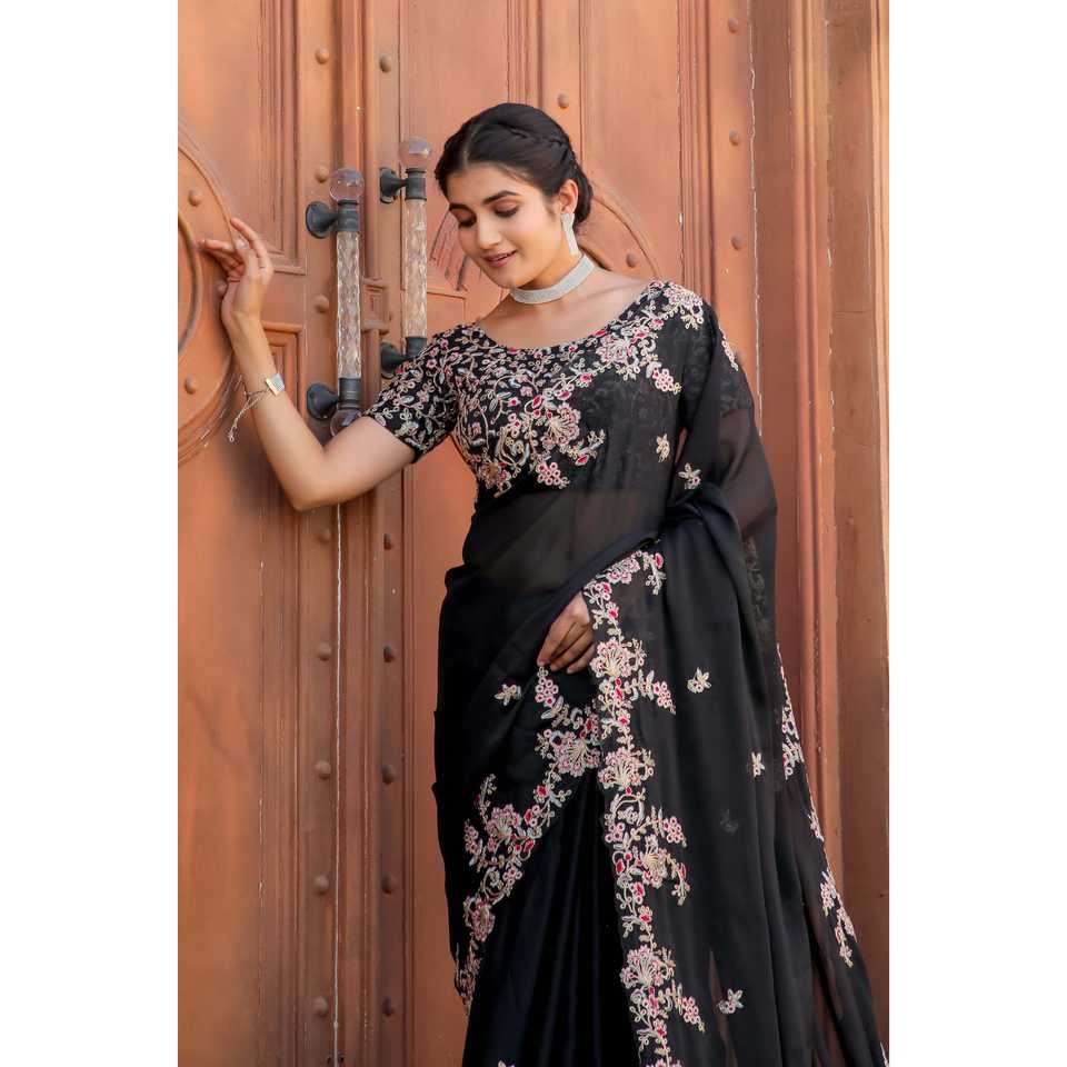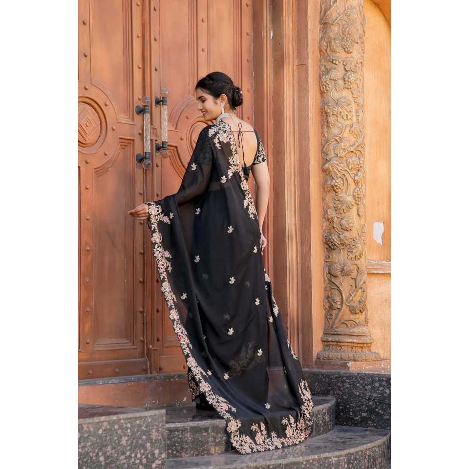 ชุดส่าหรีงานปาร์ตี้ยามเย็น ประดับด้วยงานปักดิ้นดิ้นทอง