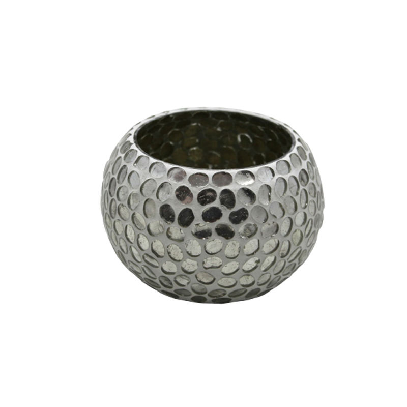 แก้วใส่เทียนสำหรับตกแต่งงานอีเว้นท์กระเบื้องโมเสคสีเงินทรงรีสำหรับตกแต่งสวนงานแฮนด์เมดออกแบบได้ตามต้องการ