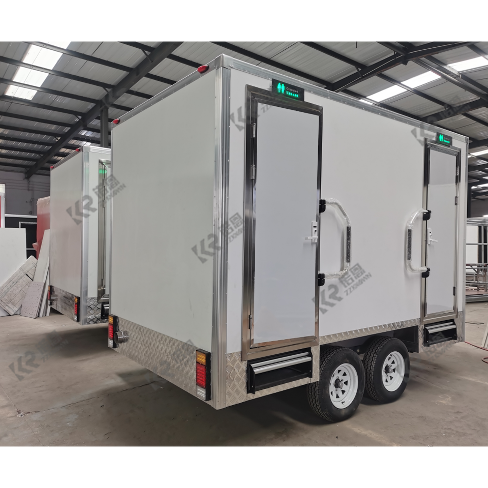 ห้องอาบน้ำเคลื่อนที่กลางแจ้งสุดหรูสำหรับคาราวาน ห้องน้ำเหล็กเคลื่อนที่ รถพ่วงห้องน้ำแบบพกพา พร้อมสุขภัณฑ์และน้ำ