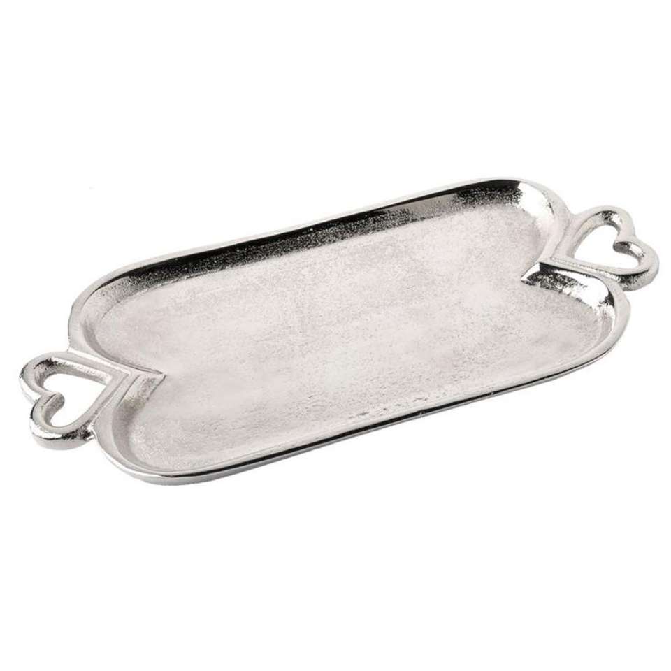 ถาดเสิร์ฟอะลูมิเนียมตกแต่งสำหรับงานอีเว้นท์ ถาดสีเงินขนาดใหญ่พร้อมหูจับรูปเขากวางสีทอง งานฝีมือโลหะ ดีไซน์ล่าสุด 2026