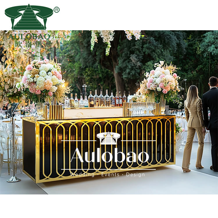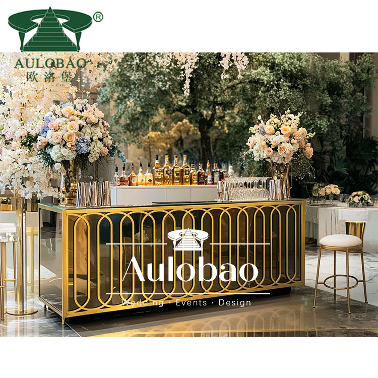 เคาน์เตอร์บาร์สเตนเลสสีทองสำหรับงานแต่งงานงานปาร์ตี้