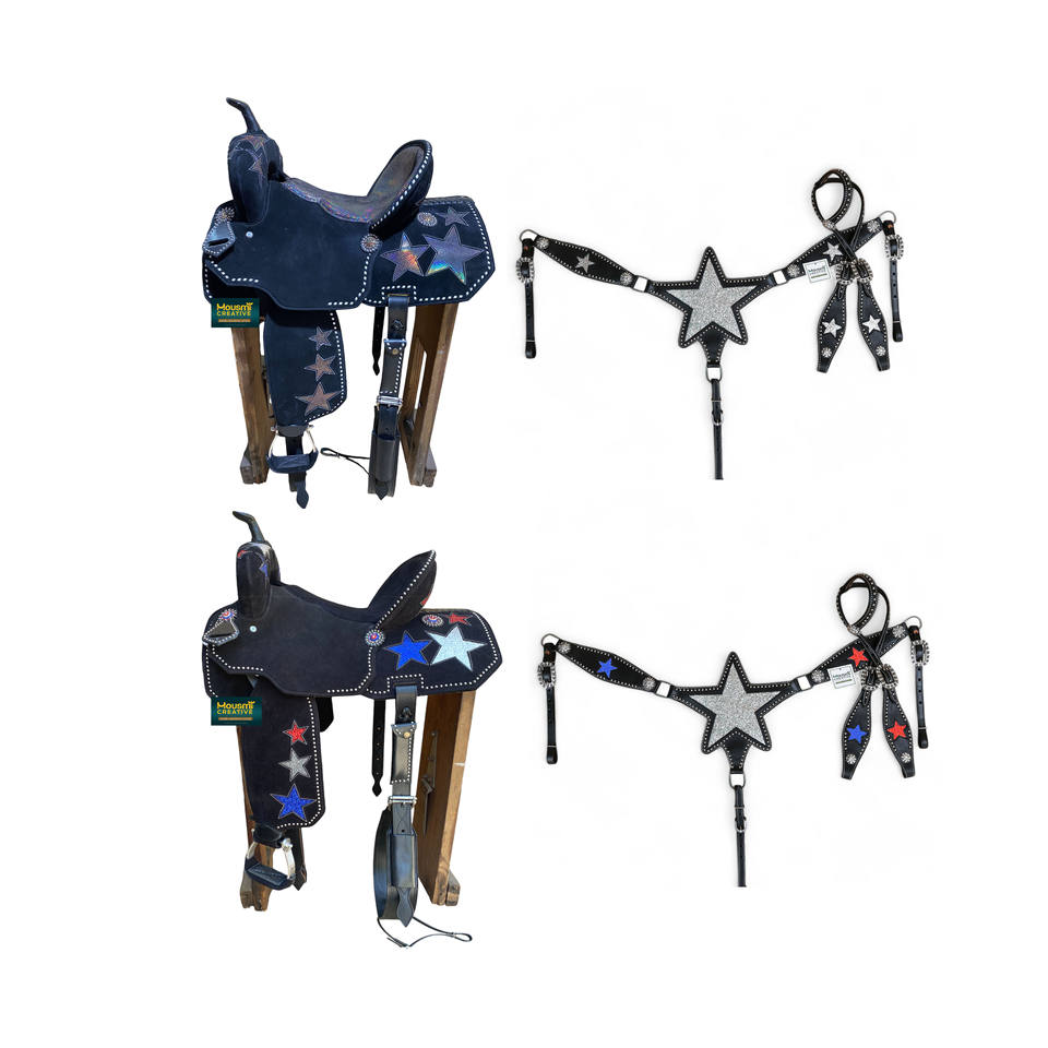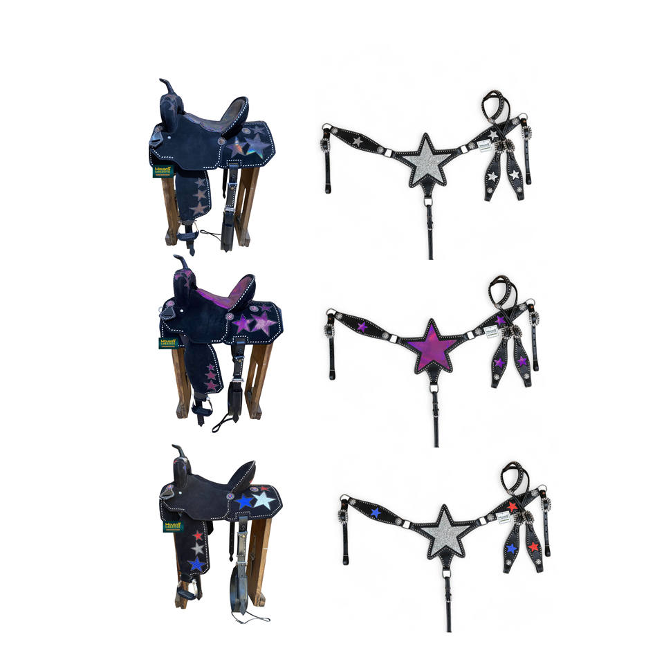 Product name:Western Horse Glitter Seat Saddle Matching Headstall Breast Collar Set