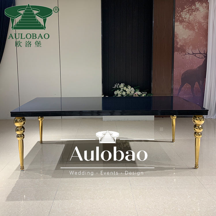 โต๊ะรับประทานอาหารสีทองตัดขาสีดำ MDF ด้านบนพรีเมี่ยมงานแต่งงาน8