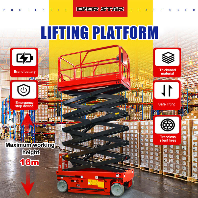 แพลตฟอร์มยกของ Ever Star แบบกรรไกรไฟฟ้า ความสูงสูงสุด 16 เมตร สำหรับใช้ในคลังสินค้า
