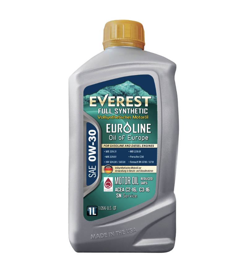 น้ำมันเครื่องสังเคราะห์แท้เอเวอร์เรสต์ ยูโรไลน์ SAE 0W-30 ป้องกันการสึกหรอ สำหรับยานยนต์ บรรจุ 6 ขวด ขนาด 1 ควอร์ต