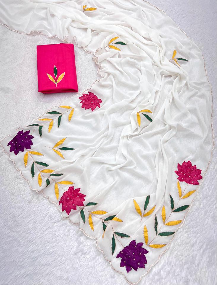 ชื่อผลิตภัณฑ์:ผ้าส่าหรีเย็บปักถักร้อยด้วยมือด้วยดอกไม้ที่สวยงาม