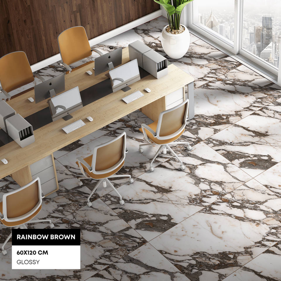 กระเบื้องปูพื้นพอร์ซเลนบริสุทธิ์ขนาด600x1200มม. ทรงสี่เหลี่ยมผืนผ้าลายดอกไม้พิเศษสำหรับใช้ในเชิงพาณิชย์