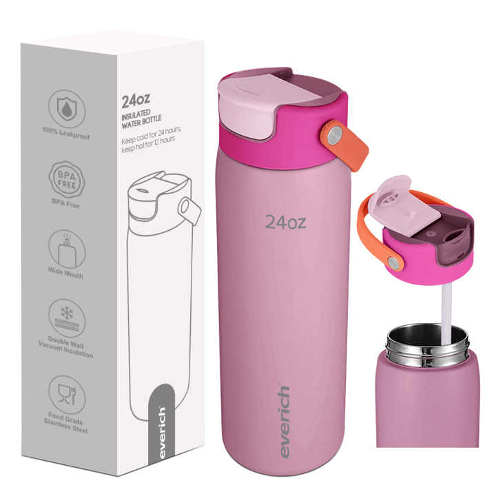 ขวดน้ำสแตนเลส Everich ODM ขนาด 24 ออนซ์ ปากกว้าง พร้อมฝาปิดหลอดดูดแบบพลิกง่าย 304 สองชั้น ป้องกันการรั่วซึม