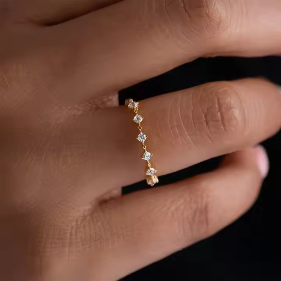 แหวน Everly-แหวนตัดรูปไข่-หินสีน้ำเงินอมเขียวหรือหิน CZ ใส-แหวนซ้อนมินิมอล-14K ทอง Vermeil-trove