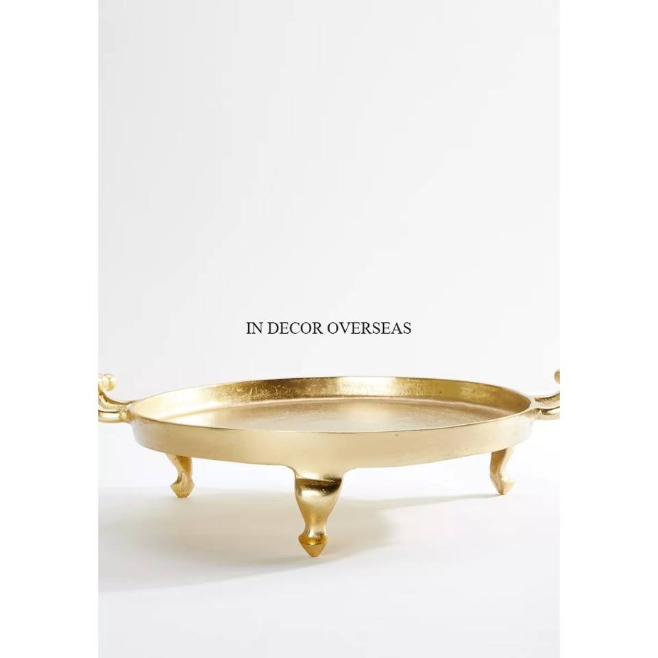 ถาดเสิร์ฟโลหะเคลือบเงาสีเงินพร้อมที่จับสีทองปรับแต่งได้ทุกประเภท
