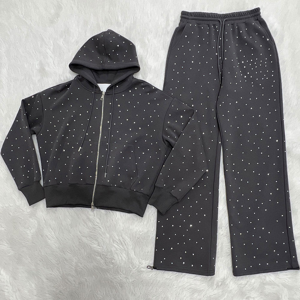 ชุดวอร์มลำลองใส่ได้ทุกวันสำหรับทุกเพศชุดวอร์มประดับพลอยเทียมคุณภาพระดับพรีเมียมพร้อมกางเกงวิ่ง