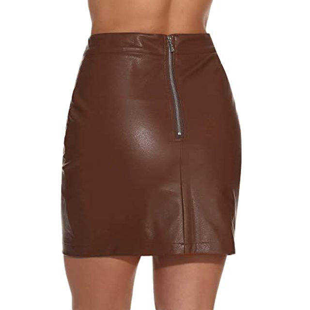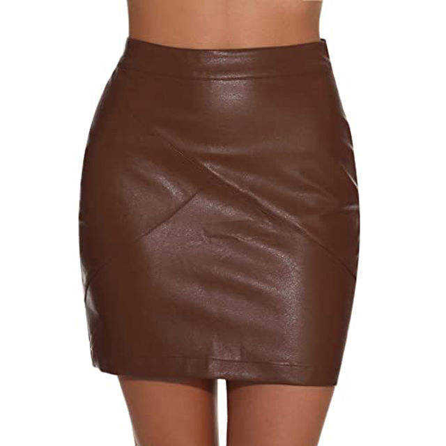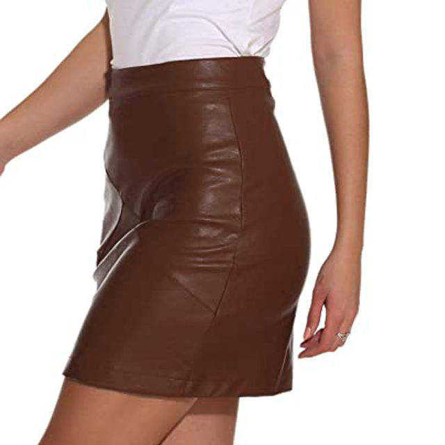 กระโปรงหนังแท้เอวสูงสำหรับผู้หญิง, กระโปรงหนังเทียมเอวสูงใส่สบายยืดได้ดีไซน์เอวสูง