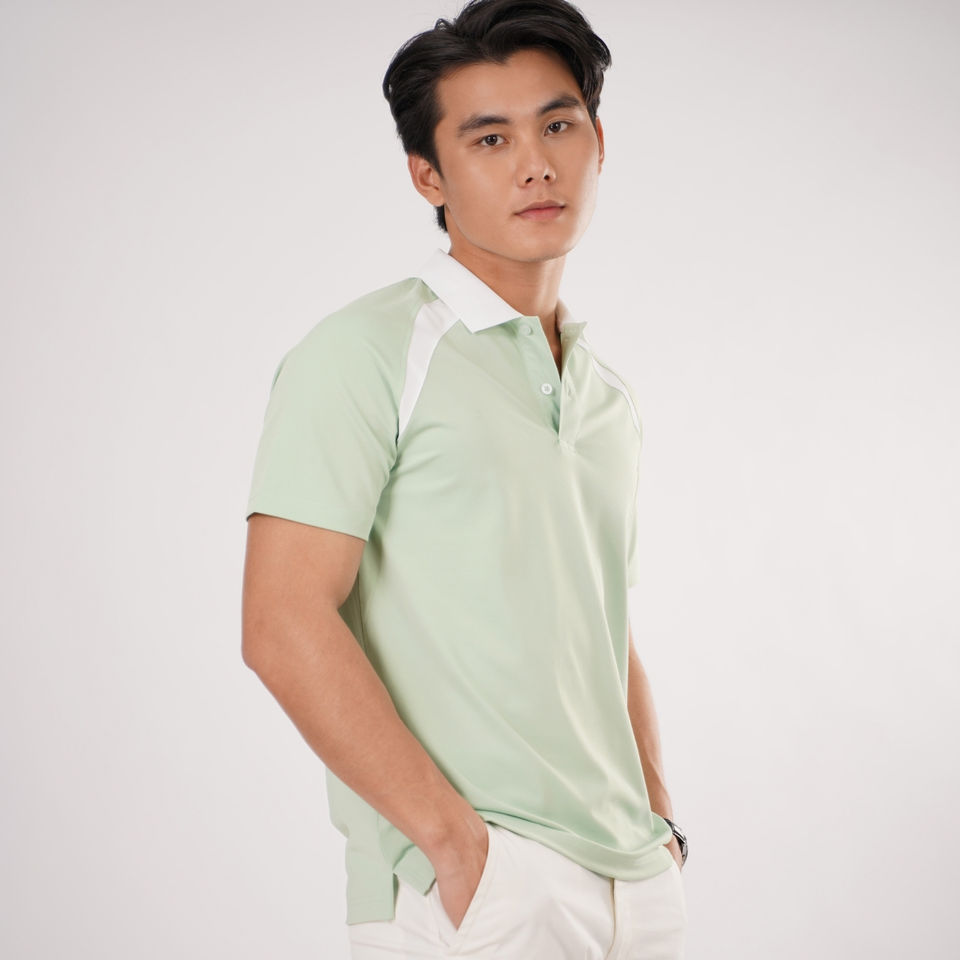 ชื่อผลิตภัณฑ์:เสื้อโปโลมีแผงโค้งตัดด้านหน้า raglans