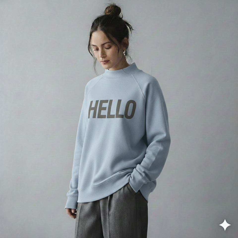 เสื้อสเวตเชิ้ตผู้หญิงคอเต่าทรงโอเวอร์ไซส์ ผ้าฟลีซ แขนยาว ไหล่ตก สีพื้น ใส่สบายทุกวัน เหมาะสำหรับฤดูหนาว มีโลโก้ด้านหน้า สไตล์ลำลอง