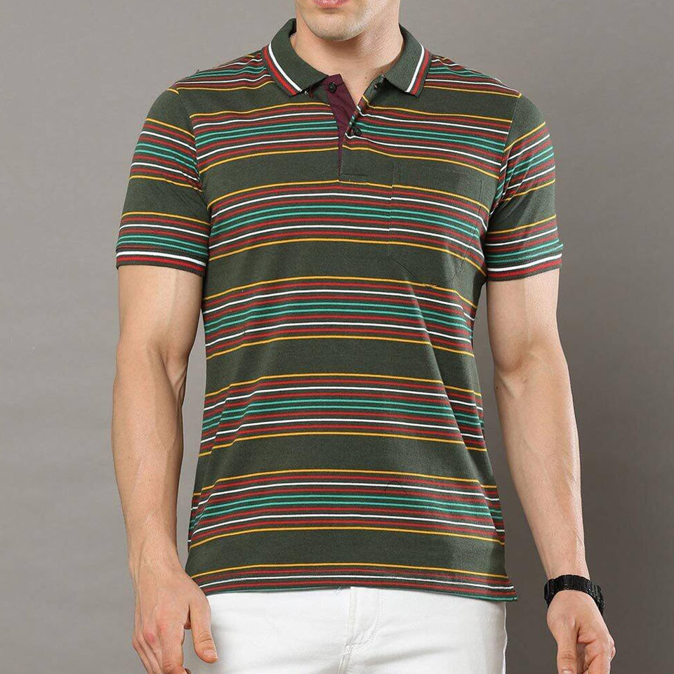 เสื้อโปโลลายทางสำหรับผู้ชาย สไตล์เรียบง่าย ผ้าระบายอากาศ เหมาะสำหรับสวมใส่ในชีวิตประจำวัน กิจกรรมกลางแจ้ง และการเดินทาง