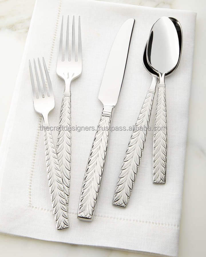 ชุดช้อนส้อมโลหะสำหรับใช้ในชีวิตประจำวัน พร้อมลวดลายด้ามจับที่เป็นเอกลักษณ์ ให้ลุคที่ทันสมัยและทนทานในเชิงปฏิบัติสำหรับใช้ในบ้าน