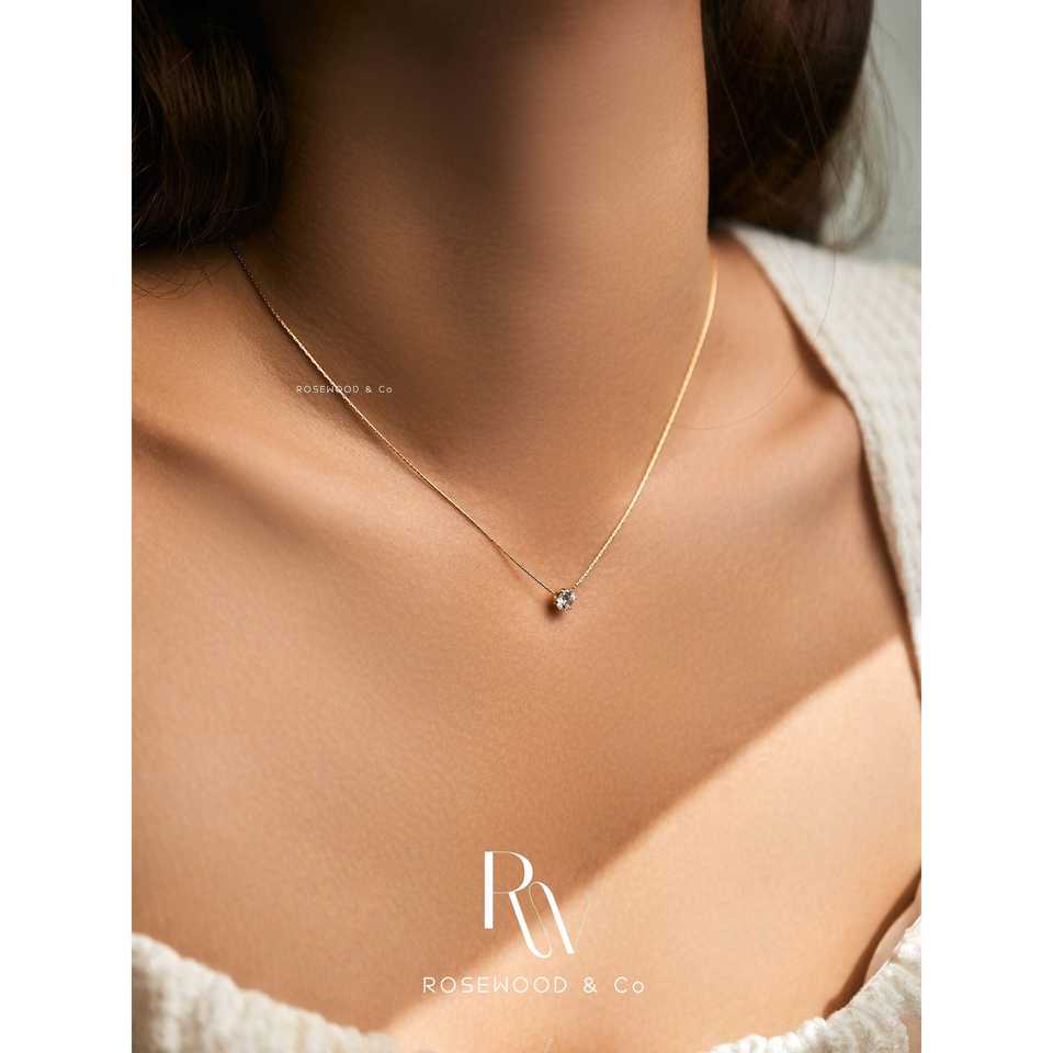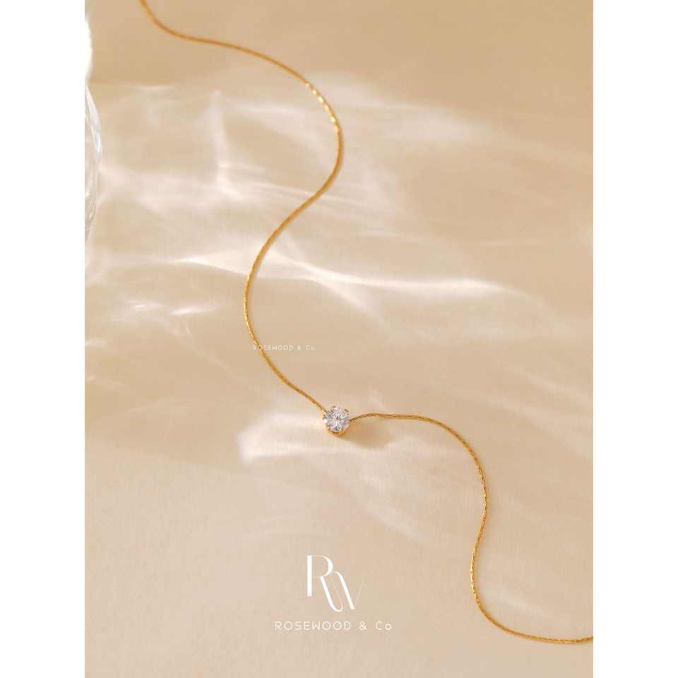 สร้อยคอเพชร CZ เดี่ยวทรงโซลิแทร์เคลือบทองกันน้ำ ไม่หมอง ทนทานทุกวัน ประดับด้วยคริสตัลเลเยอร์เลเยอร์แบบละเอียดอ่อน