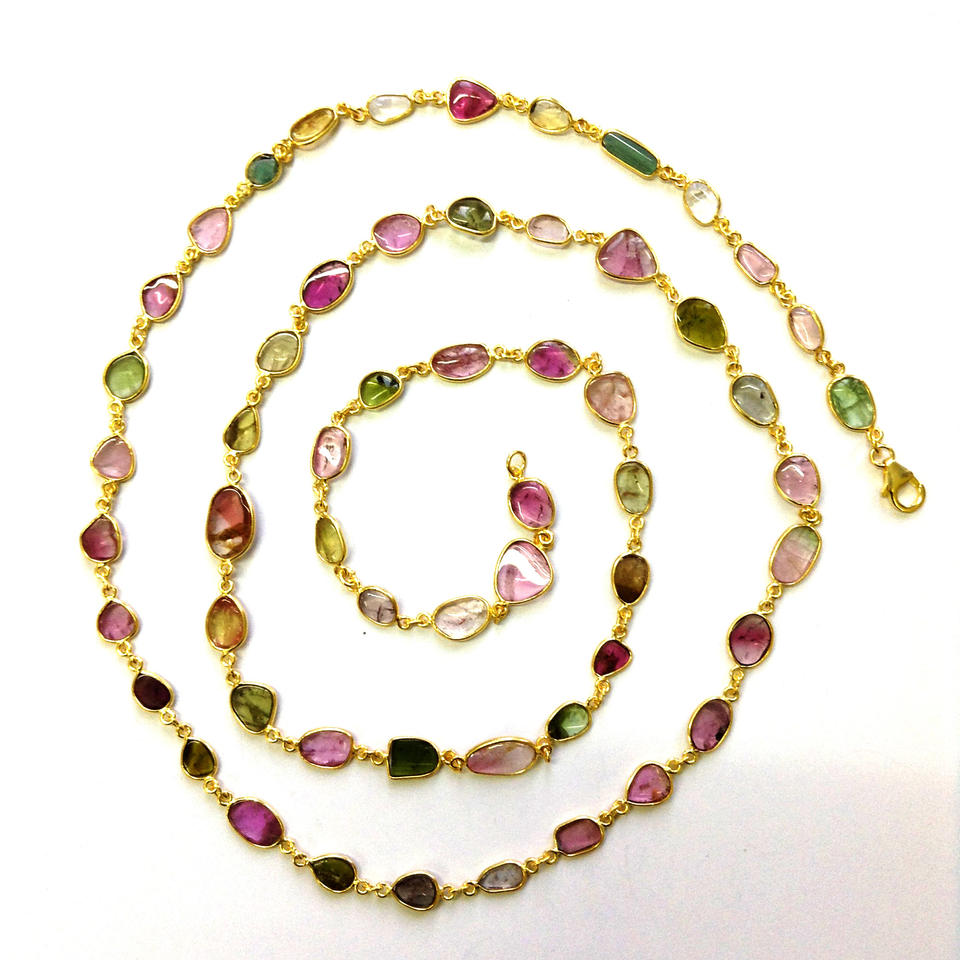 สร้อยคอโซ่ยาวประดับลูกปัดทัวร์มาลีนชุบทอง925ใส่ได้ทุกวันใส่ในสำนักงาน