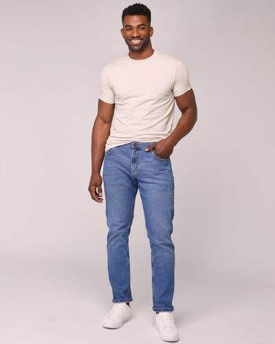 กางเกงยีนส์เดนิมพรีเมียมสำหรับผู้ชายใส่ได้ทุกวัน พร้อมโลโก้แบบกำหนดเอง ทรงปกติ สไตล์วินเทจ เป็นมิตรกับสิ่งแวดล้อม เหมาะสำหรับใส่ลำลองแนวสตรีท สีน้ำเงิน
