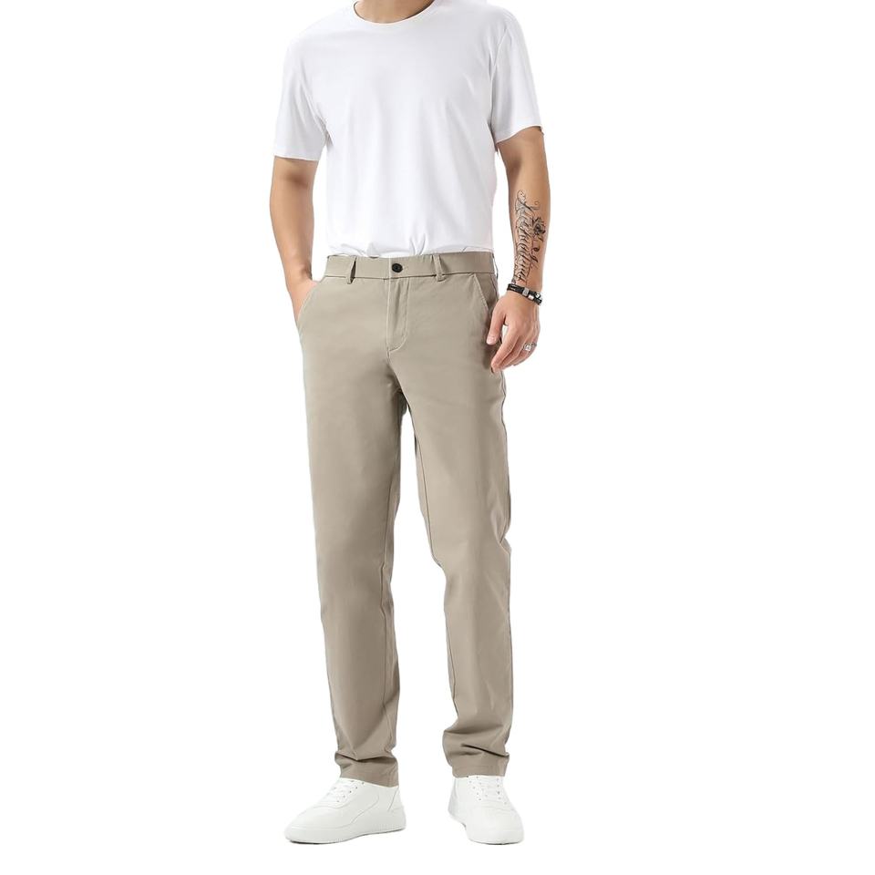 กางเกงชิโนทรงสลิมฟิตสำหรับผู้ชายผ้าคอตตอนยืดระบายอากาศได้ดีเหมาะสำหรับใส่ทั้งวัน