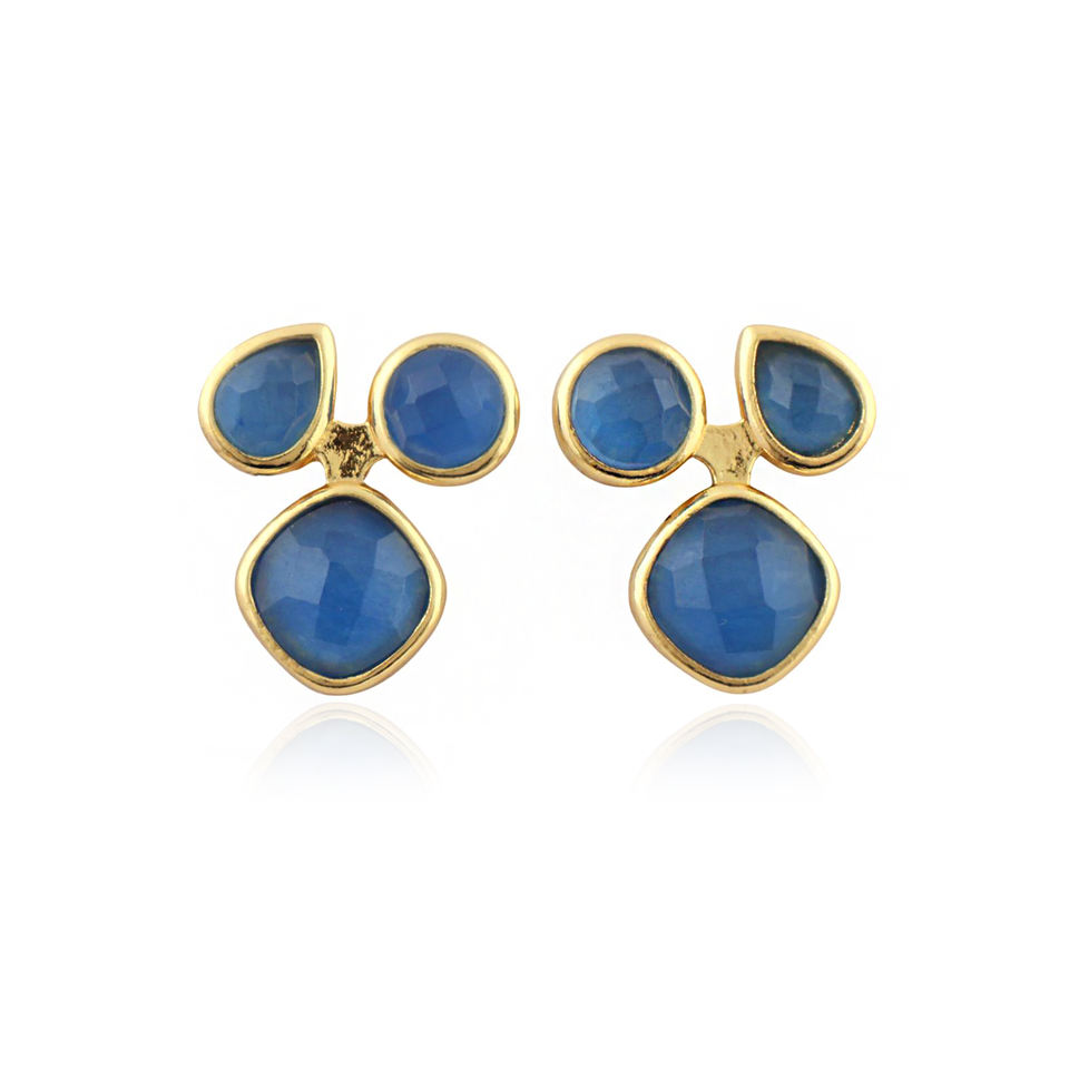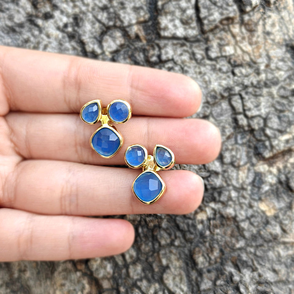 ต่างหูแบบติดหูประดับพลอยสำหรับใส่ทุกวัน ต่างหูหยกสีน้ำเงินทรงเหลี่ยมขนาดเล็ก ชุบทอง 18k ต่างหูพลอยสามรูปทรงผสมกัน