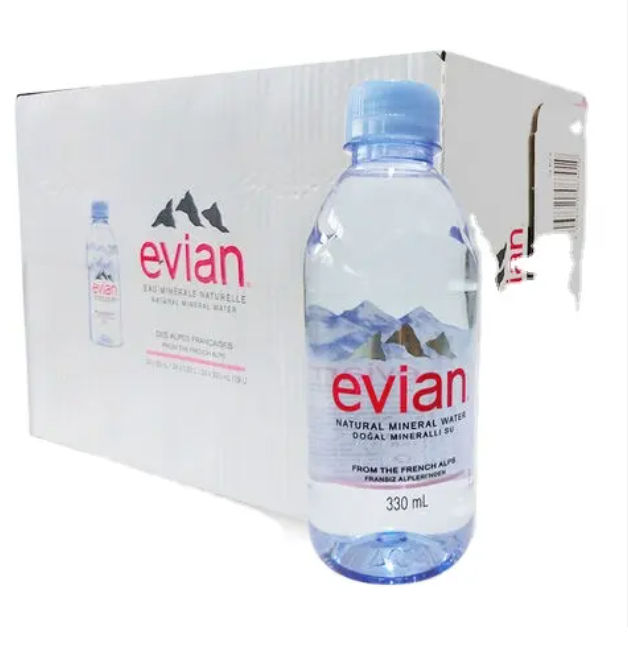 น้ำแร่ธรรมชาติเอเวียง ขวด 330 มล. แพ็ค 24 ขวด บรรจุในถาดห่อหุ้ม สำหรับตู้แช่เย็นร้านสะดวกซื้อและชั้นวางสินค้าปลีก
