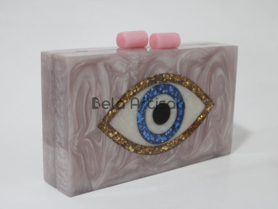 YCH กระเป๋าคลัทช์สำหรับงานตอนเย็นทำจากอะคริลิครูปตาชั่วร้ายลายหิน2025ใหม่