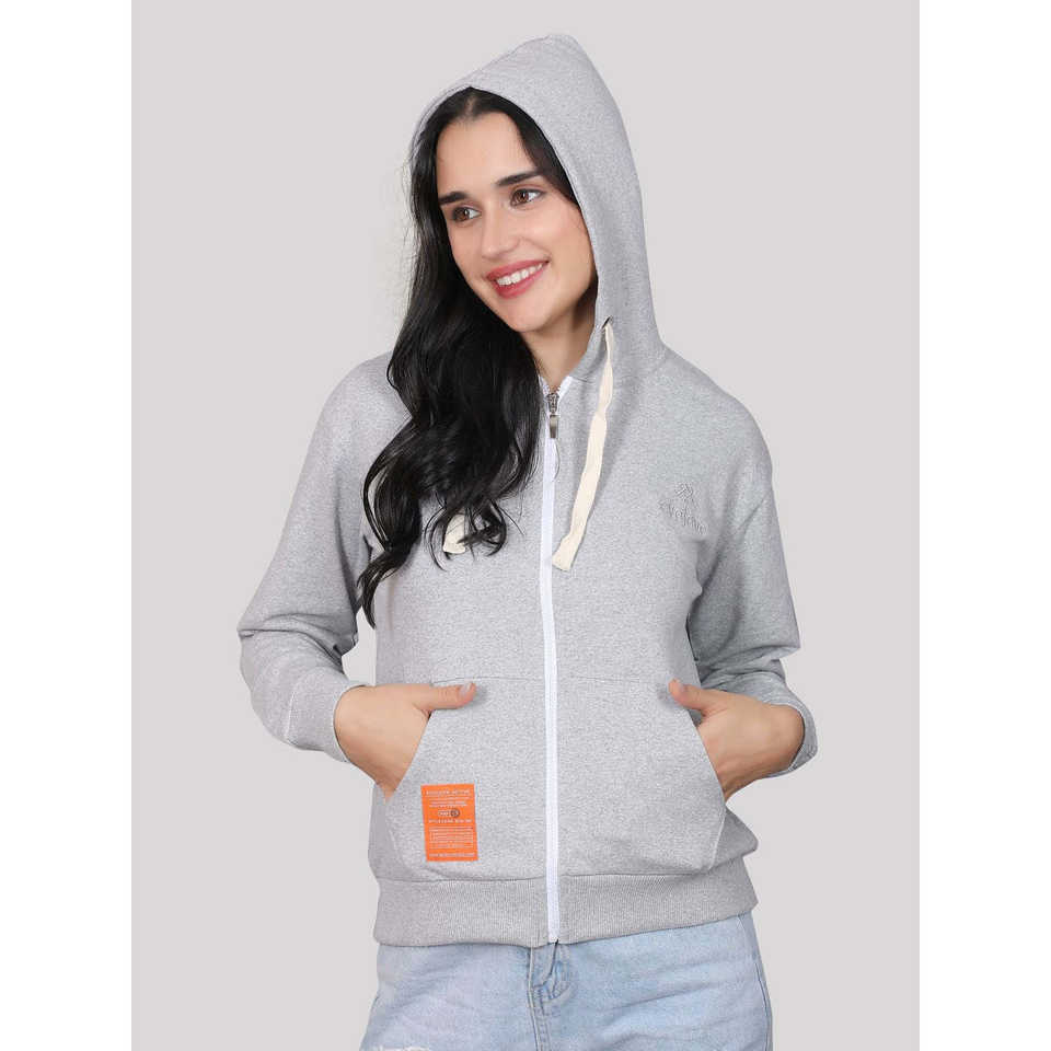 เสื้อฮู้ดผู้หญิง Evolove ผ้าฝ้ายฟลีซ 100% คอกลม แขนยาว เสื้อกันหนาวสำหรับฤดูหนาว ระบายอากาศได้ดี