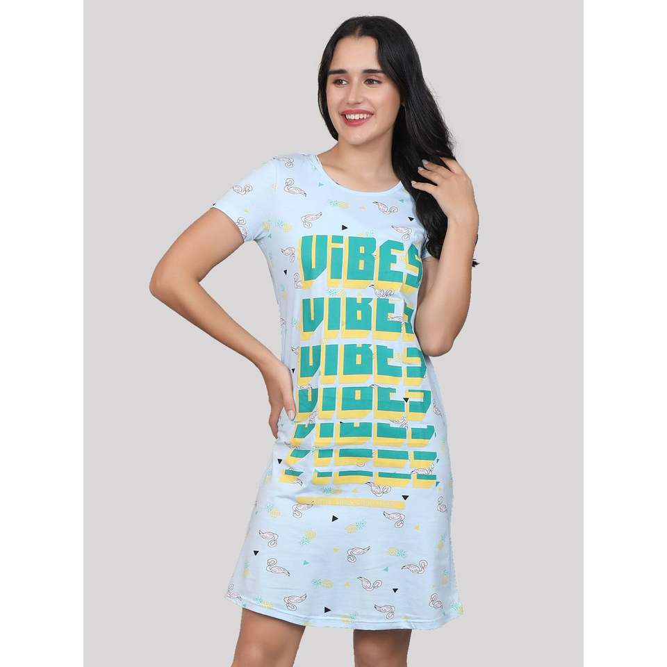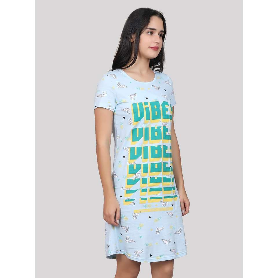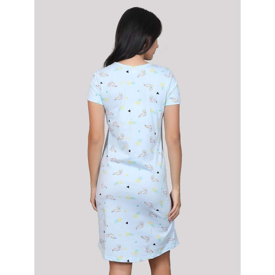 ชุดนอนสั้นลำลองผ้าฝ้ายพิมพ์ลายเนื้อนุ่ม 100% สำหรับผู้หญิงของอีโวลอฟสีน้ำเงิน
