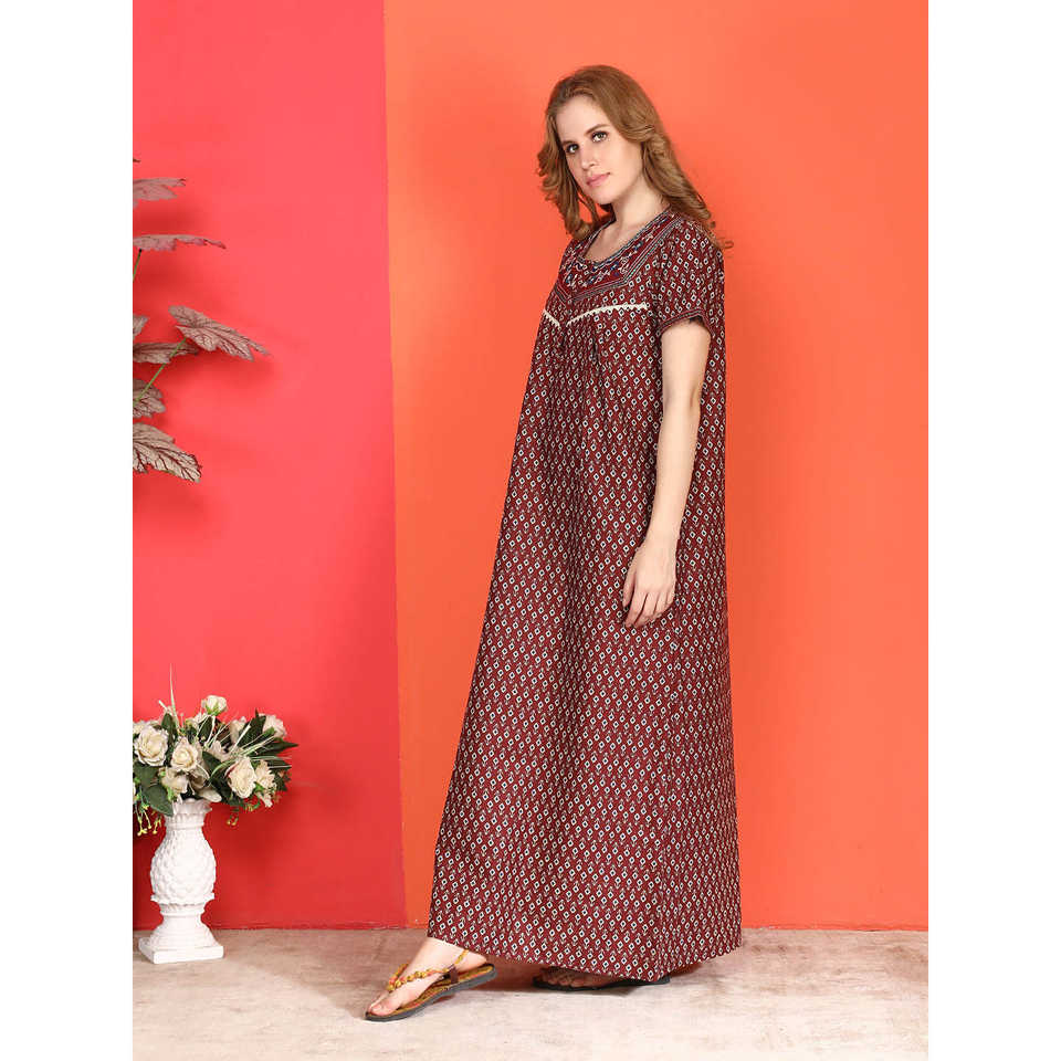 ชุดนอนผู้หญิง Evolove ผ้าฝ้ายลำลอง พิมพ์ลาย แขนสั้น ยาวเต็มตัว มีกระเป๋าข้าง ติดกระดุม ไซส์ XS เนื้อผ้านุ่ม