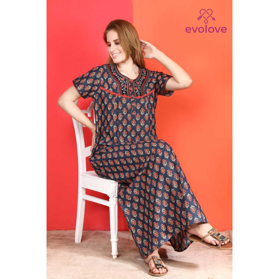 ชุดนอนผ้าฝ้ายลำลองสำหรับผู้หญิง Evolove ลายพิมพ์ แขนสั้น ยาวเต็มตัว มีกระเป๋าข้าง เนื้อผ้านุ่ม ขนาด XS