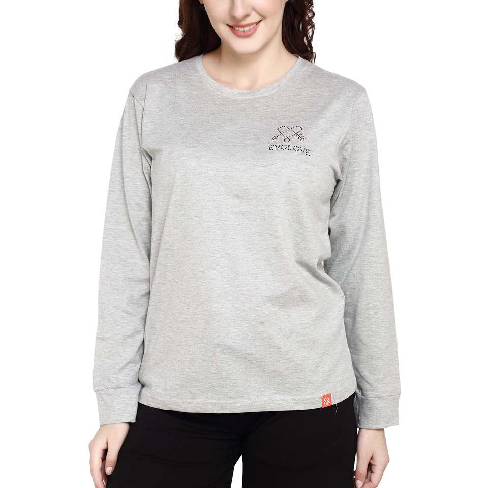ชุดกางเกงขาสั้นแขนยาวสำหรับผู้หญิงเอโวลอฟชุดนอนคอกลมสีเทาพร้อมผ้าเจอร์ซีย์เนื้อนุ่มพิมพ์ลายเอโวลอฟ