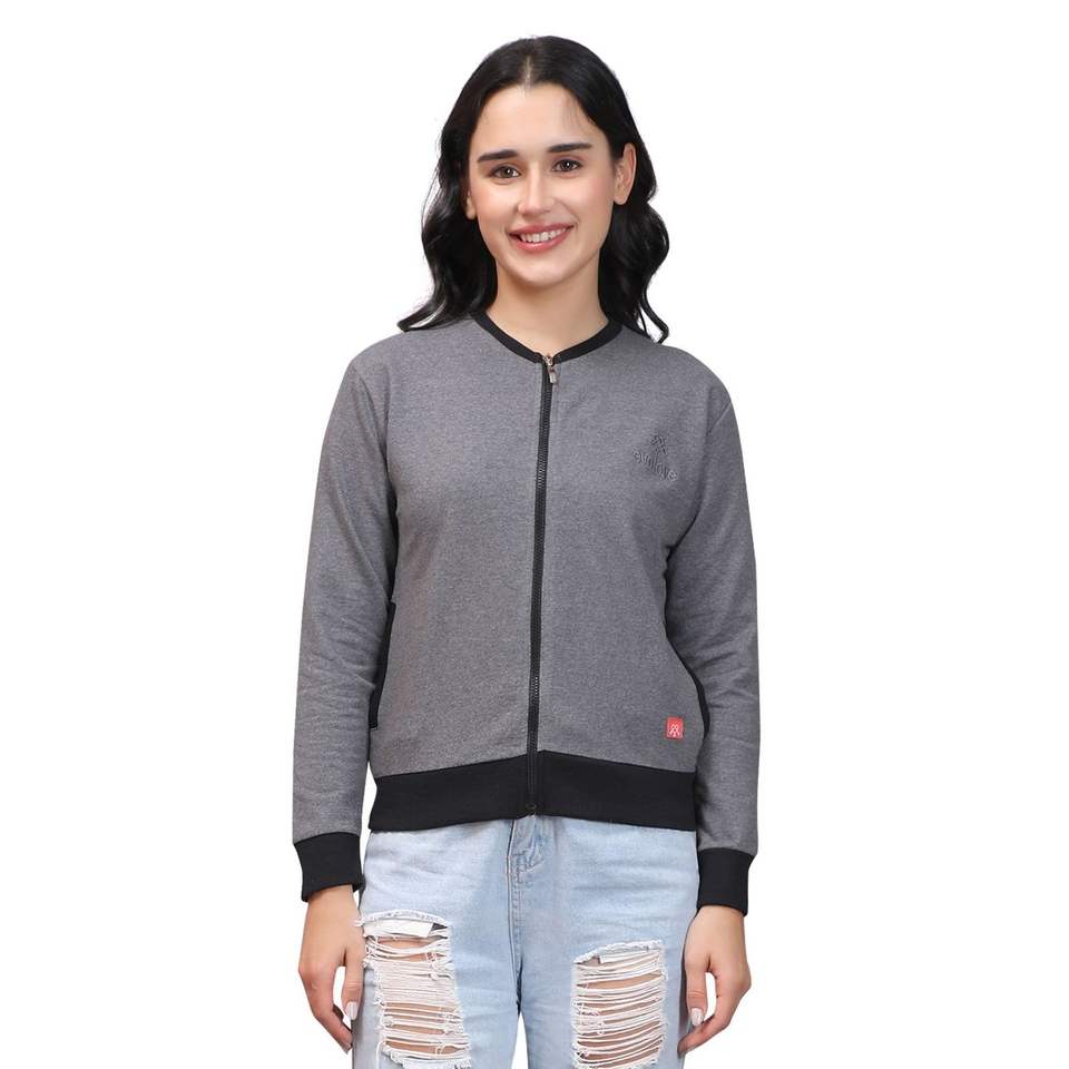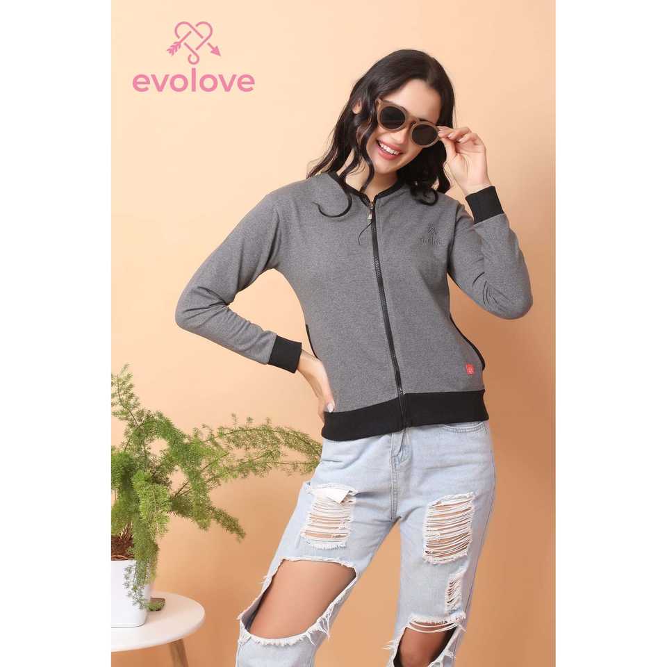 เสื้อฮู้ดผ้าไหมผสมฝ้ายสำหรับผู้หญิง Evolove คอกลม แขนยาว เสื้อกันหนาวปักลาย ระบายอากาศได้ดี