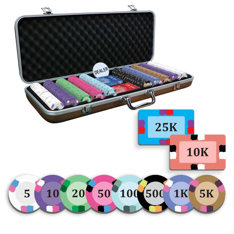 ชุดชิปโป๊กเกอร์ Evy 300/500 ชิ้น พร้อมแผ่นรอง 10/20 แผ่น ชิปเซรามิกขนาด 40/45/50 มม. น้ำหนัก 10/14/17 กรัม รวมถาด