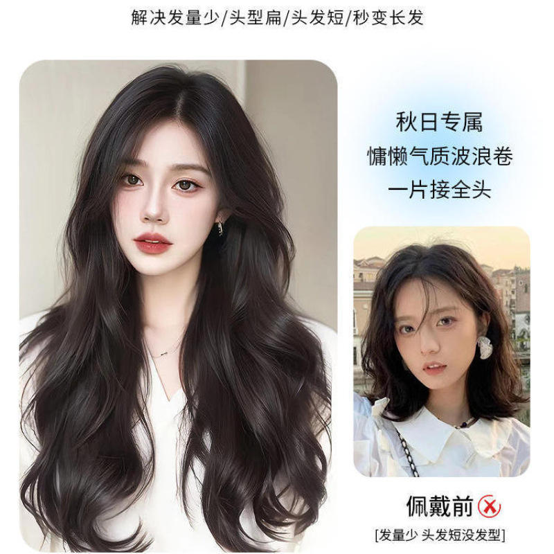 วิกผมยาวหยิกสำหรับผู้หญิง Ex143 ความหนาแน่น 200% เส้นใยคาเนคาลอน วิกผมต่อเพิ่มวอลลุ่มแบบชิ้นเดียว เหมาะกับทุกรูปหน้า