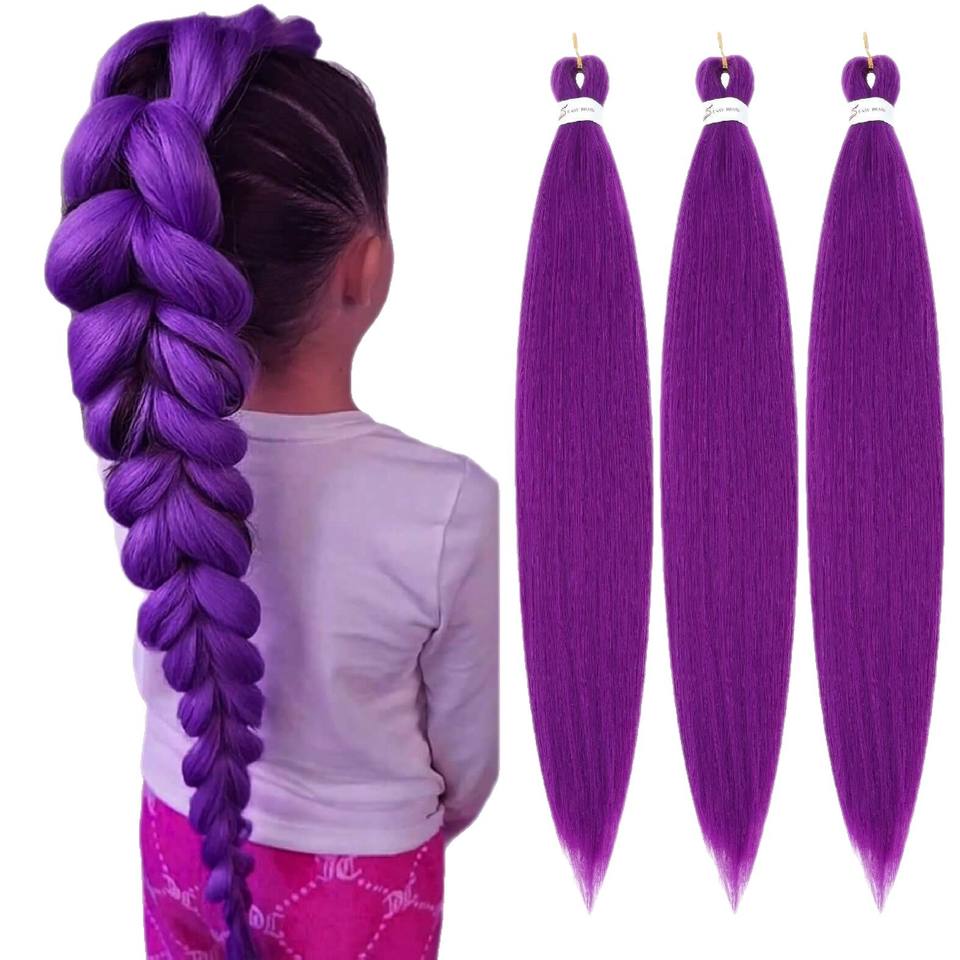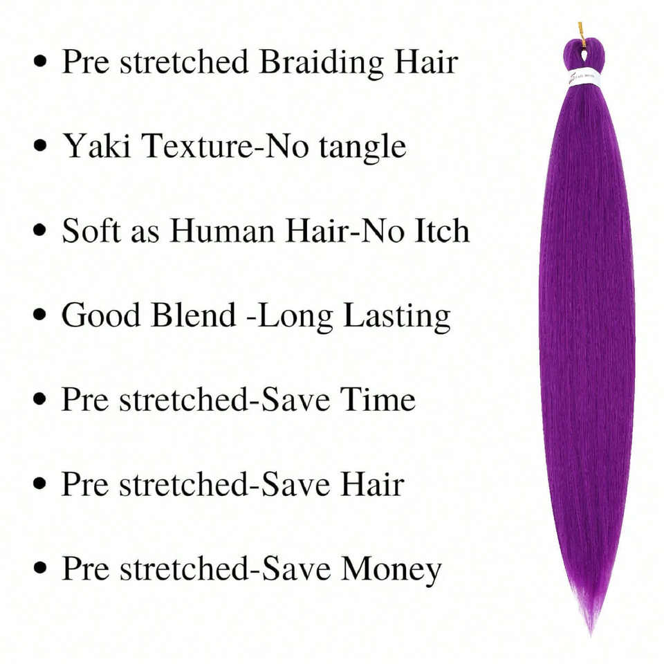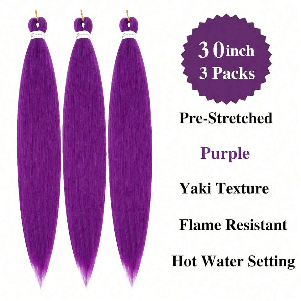 ผมถักตรง Ex155 ขนาด 30 นิ้ว สีม่วง เส้นใยคาเนคาลอน ยืดก่อนใช้งาน เนื้อผมแบบยาคิ สำหรับการใช้งานที่ยาวนาน