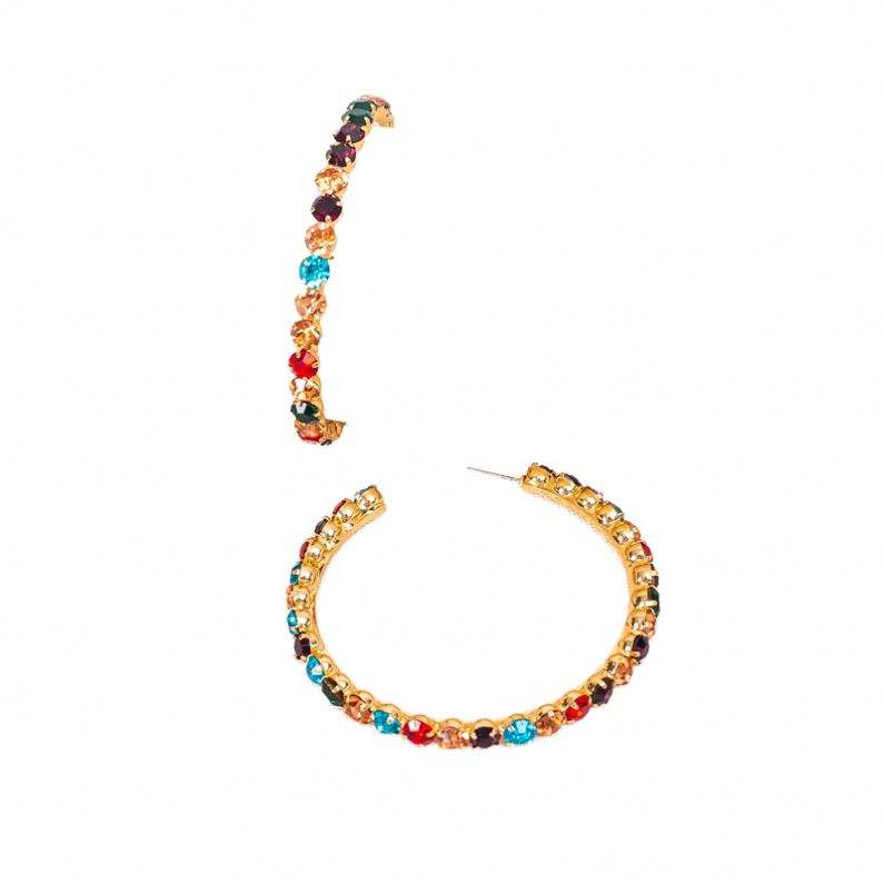 ต่างหูห่วงทรงกลมชุบทอง ดีไซน์เรขาคณิตสุดเก๋ ประดับคริสตัลหลากสีสัน สำหรับเด็ก ของขวัญงานปาร์ตี้ งานครบรอบ