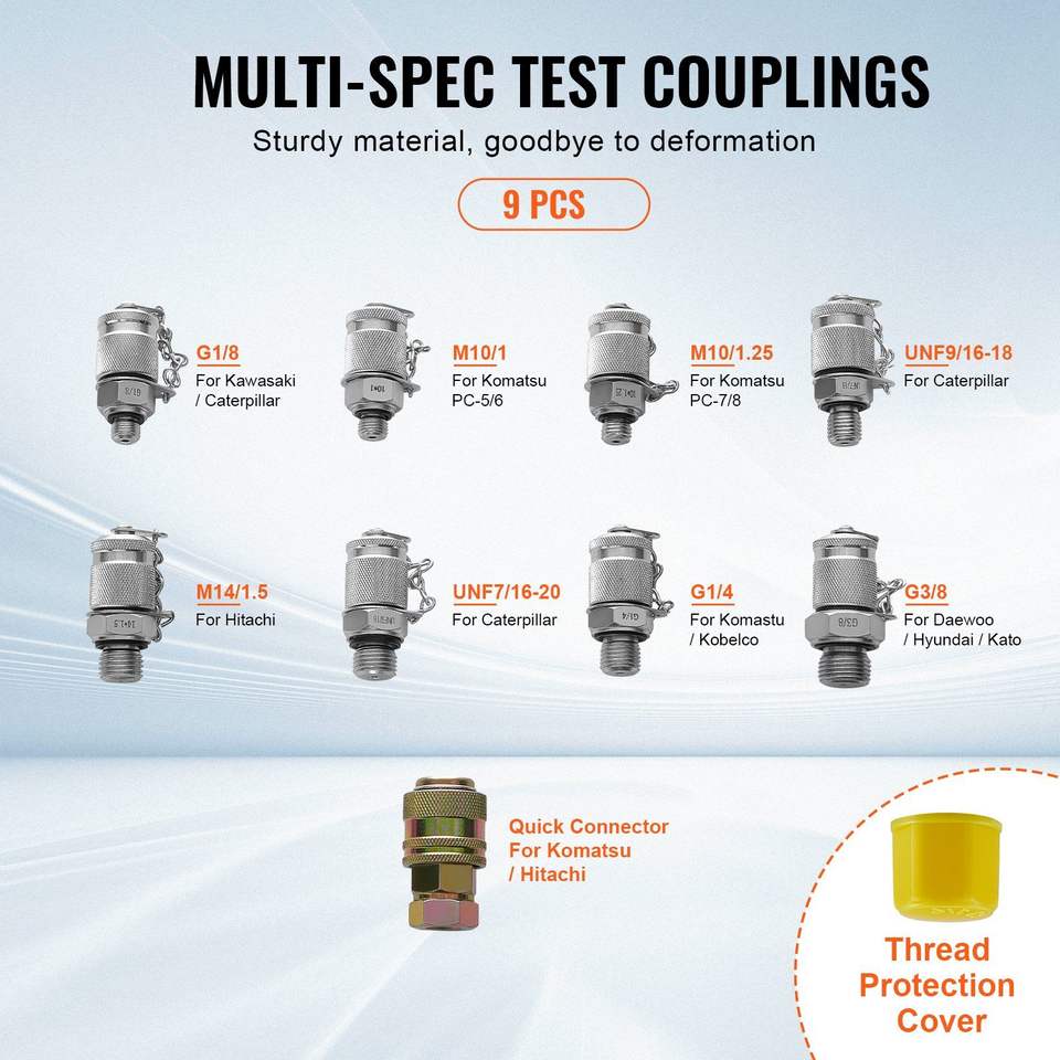 ชุดเครื่องวัดทดสอบไฮดรอลิกสำหรับรถขุด250/400/600bar กระเป๋าพกพาสำหรับ3เกจ9สำหรับทดสอบข้อต่อสำหรับการพกพา