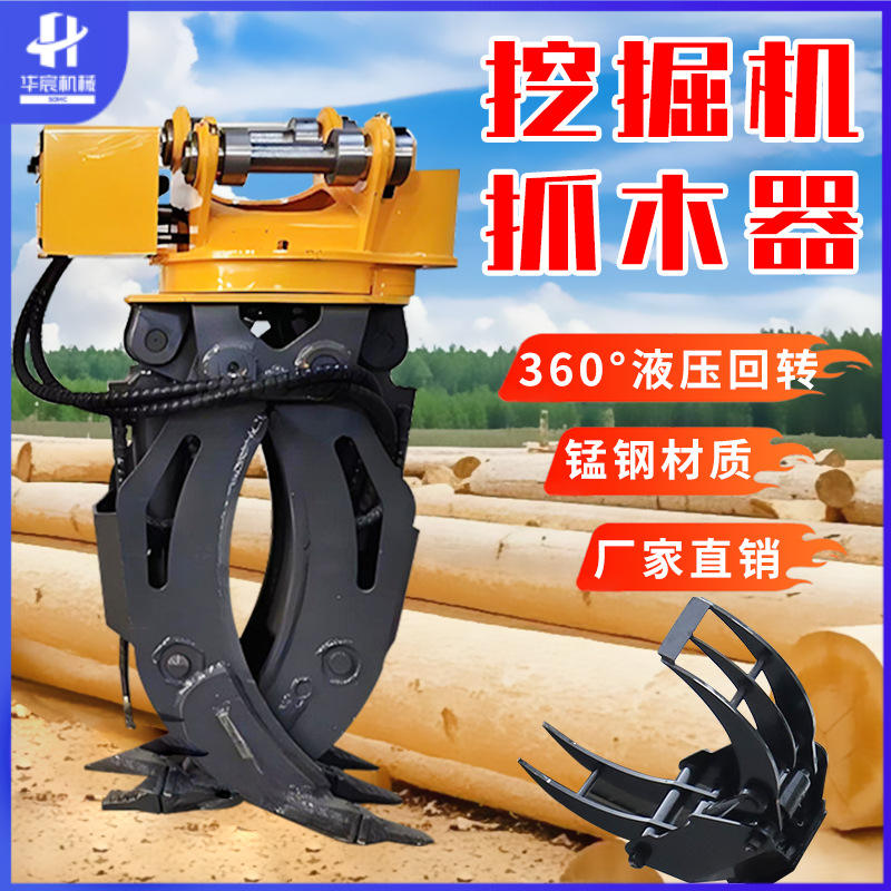หัวจับไม้สำหรับรถขุดไฮดรอลิก หมุนได้ 360 องศา หัวจับเหล็กอเนกประสงค์ หัวจับไม้