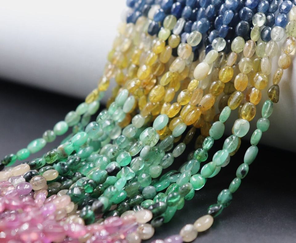 ลูกปัดรูปไข่ที่เรียบและมีค่าหลายเม็ด