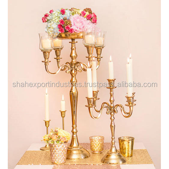 ทางเลือกที่ดีเยี่ยมของเชิงเทียนโลหะสีทองเงาสําหรับเชิงเทียนอาหารค่ําโรงแรมตกแต่งบ้าน